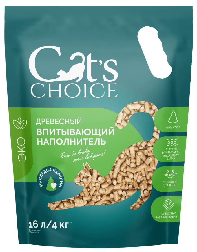 Так что мы в питомнике с большим удовольствием используем древесный впитывающий наполнитель Cat's Choice.