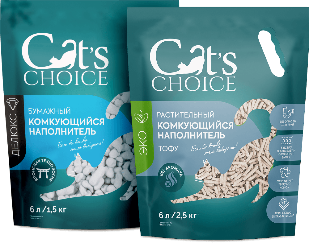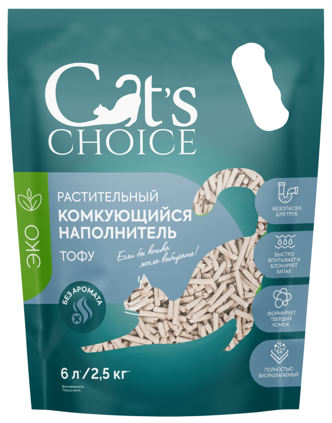 Растительный комкующийся наполнитель тофу марки Cat's Choice - это классический тофу белого цвета и без специфического запаха,